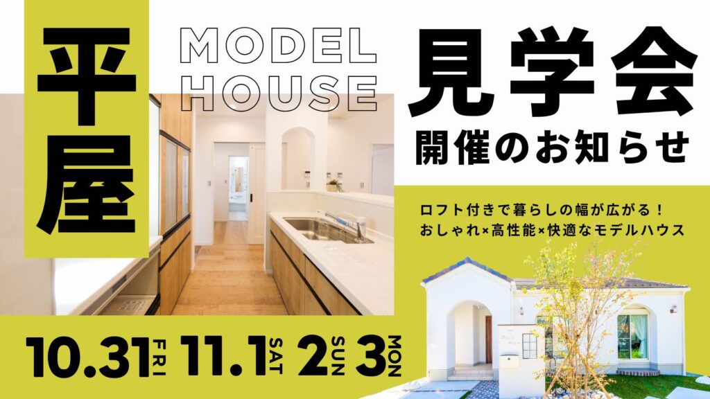 【10月24日〜26日スタート】山梨で平屋を検討中の方必見!モデルハウス見学会開催のお知らせ