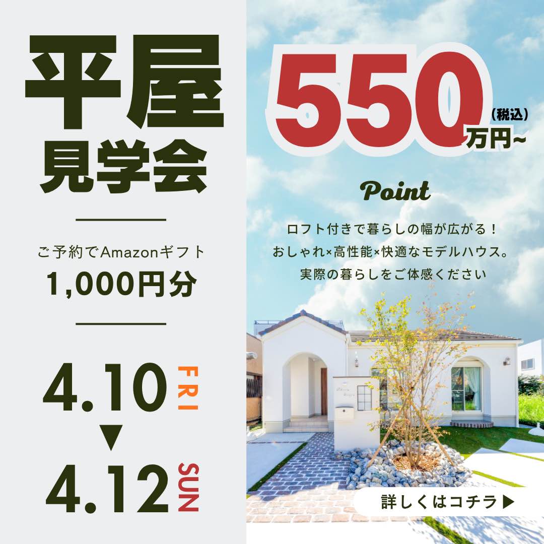 「山梨で平屋を建てたい」「山梨平屋住宅の暮らしに興味がある」――そんな方にぴったりのモデルハウス見学会を開催中です。