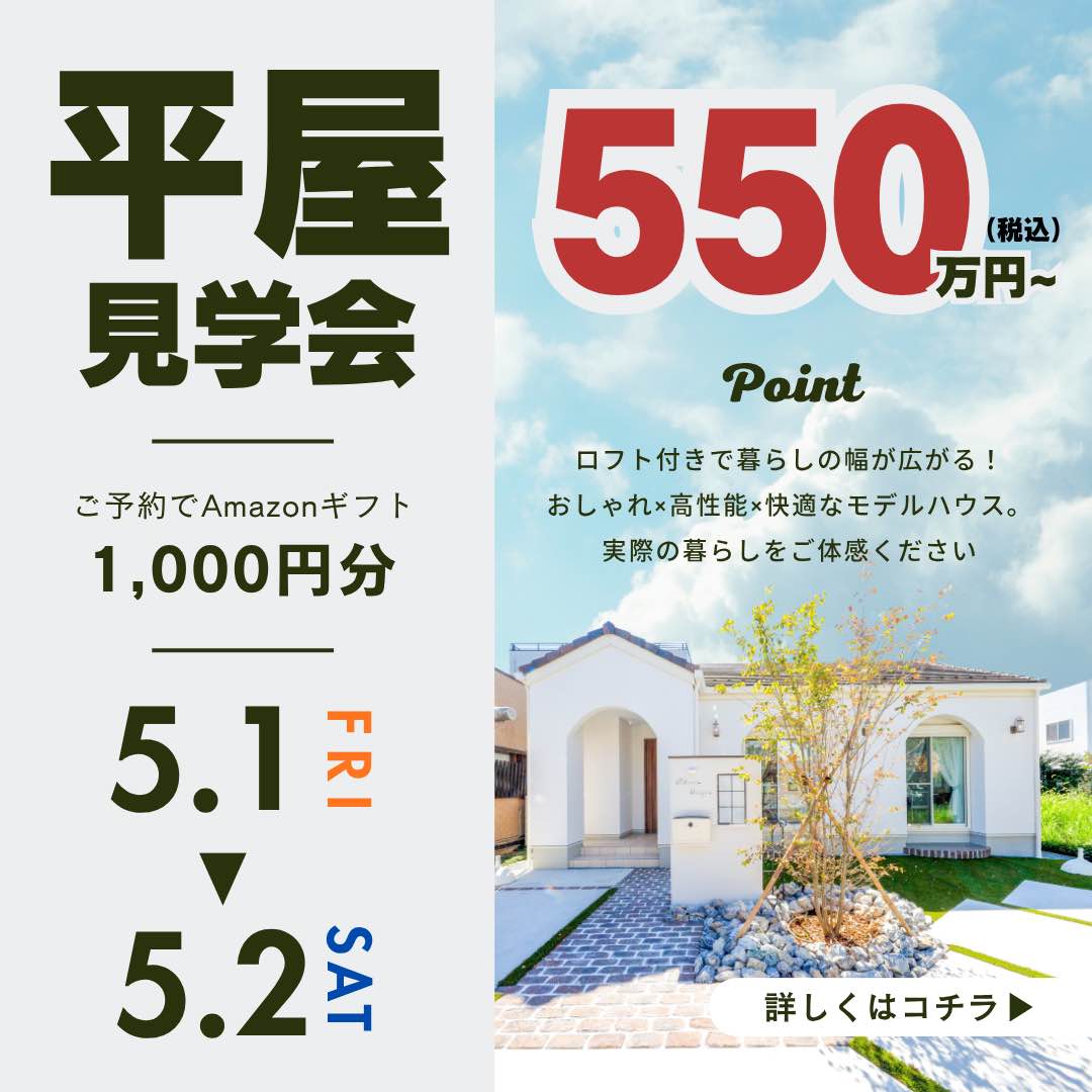図面や写真では伝わらない、実際の平屋の広さ・暮らしやすさ・動線の工夫を、ぜひ現地で体感してください。